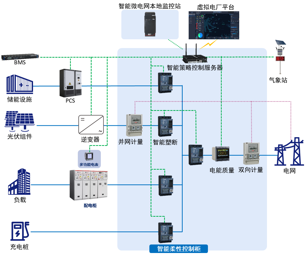 CET-7320微网控制器: 不仅能够实现光储充系统的协调控制,从而提升绿电消纳率,保障客户的经济收益;还可以在光储直柔场景充分发挥系统柔性,调控可调资源,维持系统安全、稳定、经济、高效运行。